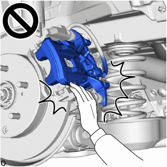 (c) Sujete el pasador deslizante del cilindro del freno de disco trasero e instale el conjunto del cilindro del freno de disco trasero en el soporte del cilindro del freno de disco trasero con un perno nuevo. Torque: 34.5 N·m {352 kgf·cm, 25 ft·lbf} |