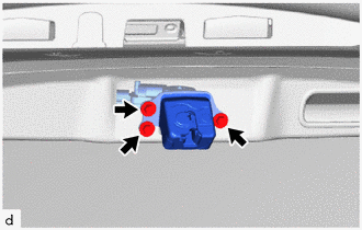 (b) Quite los 3 pernos y el conjunto de la cerradura de la puerta del maletero. |