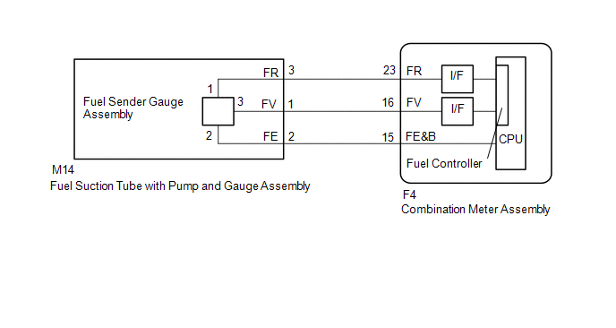 (a) Desconecte el conector M14 del conjunto del tubo de aspiración de combustible con bomba y medidor.