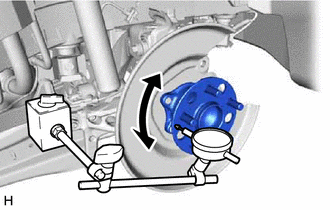 (a) Mida con un indicador de cuadrante el descentramiento de la superficie del cubo del eje trasero, fuera de los pernos del cubo del eje trasero. Descentramiento máximo: 0.05 mm (0.00196 pulg.) AVISO: