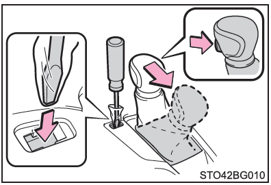 Si la palanca de cambios se ha quedado atascada con el pie en el pedal del freno mientras pulsa el botón de la palanca de cambios, es posible que haya un problema con el sistema de bloqueo del cambio. Solicite de inmediato una revisión del vehículo en un proveedor Toyota autorizado, un taller de reparación Toyota autorizado o cualquier taller fiable.
