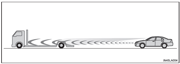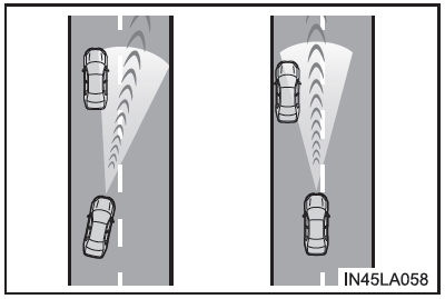 Sin embargo, cuando se detecta un vehículo precedente, el control de crucero con radar dinámico para todas las velocidades puede permanecer activado aunque la velocidad del vehículo sea de aproximadamente 50 km/h (30 mph) o inferior.