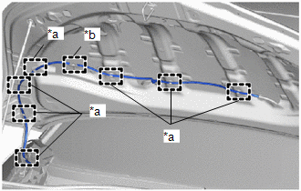 (b) Conecte el conjunto de la manguera del lavaparabrisas a las abrazaderas y la guía. |